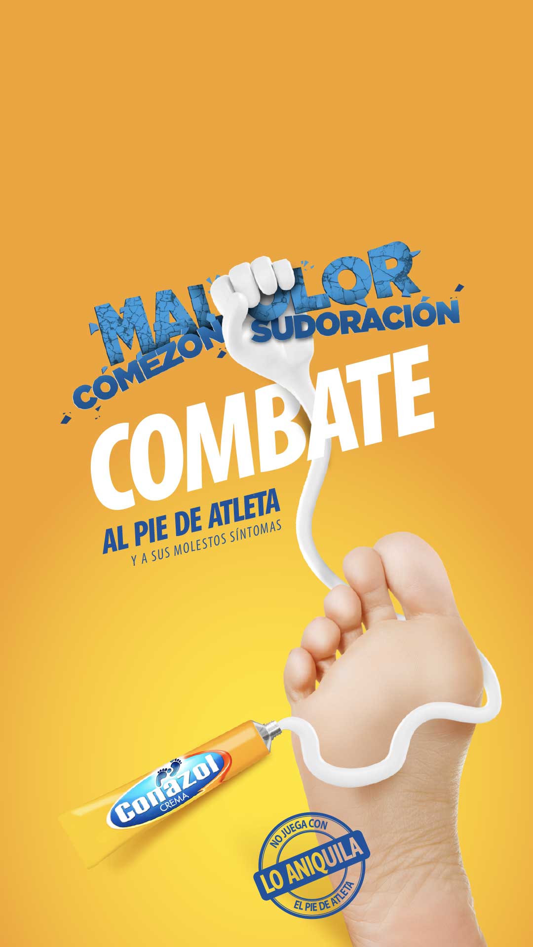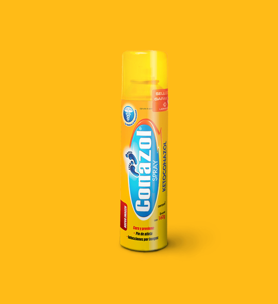 Alivia y previene mal olor, sudoración, comezón y descamación.Conazol®cremaConazol®sprayConazol®sprayConazol®talco sportConazol®soluciónFresco Aroma IcebergEl pie